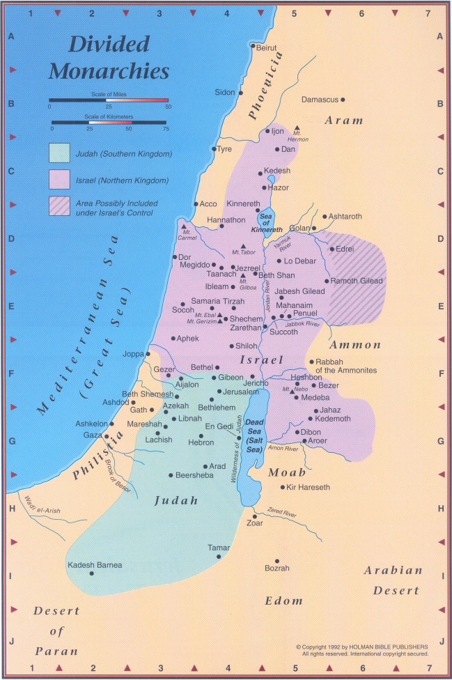 Micah and the other prophets mentioned earlier lived in a time between two of the most significant benchmark dates in Biblical history. One of them is the fall of the Northern Kingdom (Israel) in 722 B.C. at the hands of the Assyrians. Another is the fall of the Southern Kingdom (Judah) in 586 B.C. by the Babylonians – this is what began the Babylonian Exile (see the graphic showing the Divided Monarchy – click on the graphic to the right to enlarge it). So, Micah was writing to Jerusalem (in the Southern Kingdom) after the Northern Kingdom had already fallen.