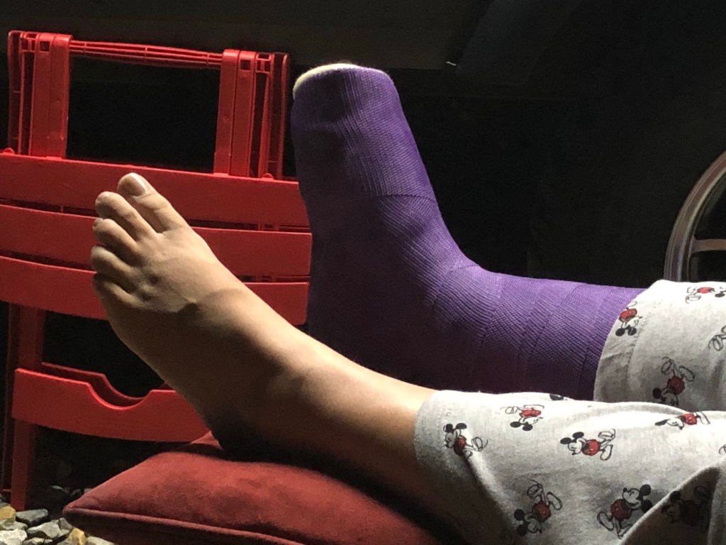 With Vicki’s broken foot, we’ve gotten into a bit of a rhythm of settling the camper with all of its connections and getting Vicki from the car to a good place to sit with her foot raised.