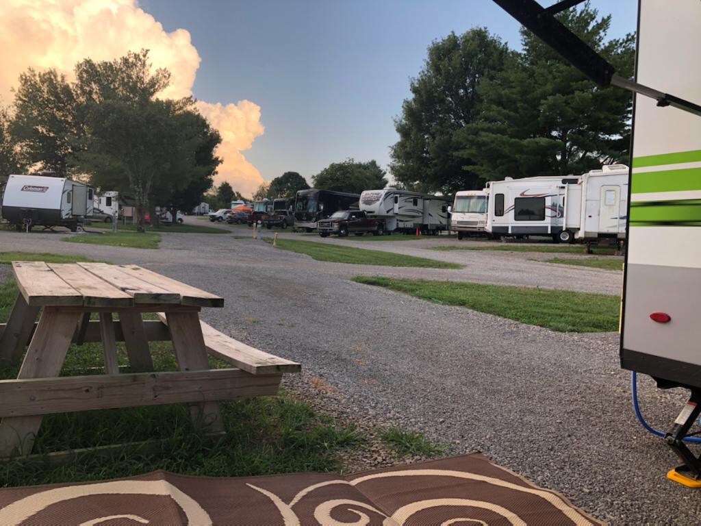 Vicki and I arrived in Franklin, KY, on July 30, at a beautiful little RV park called Bob’s Bluegrass Campground. Vicki calls it “super cute!”